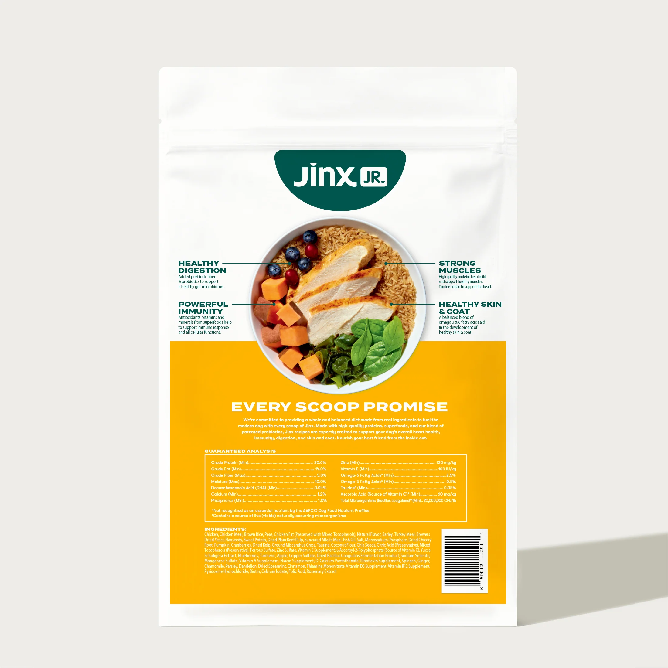 Clean, complete nutrition made with real, whole ingredients. Nothing artificial, ever. Jinx Puppy Food with Cage-Free Chicken, Brown Rice & Sweet Potato is crafted to help your pup grow strong, stay energized, and support a healthy heart and brain. No fillers. No fluff. Just real food with real benefits.